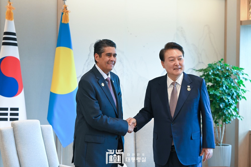 윤석열 대통령은 어제의 5개 태평양도서국 정상들과의 양자 회담에 이어 오늘(5. 29, 월) 오전 마크 브라운(Mark Brown) 쿡제도 총리, 데이비드 카부아(David Kabua) 마셜제도 대통령, 머내시 소가바레(Manasseh Sogavare) 솔로몬제도 총리, 달튼 타겔라기(Dalton Tagelagi) 니우에 총리, 수랭걸 휩스(Surangel Whipps Jr.) 팔라우 대통령과 정상회담을 실시했습니다.
